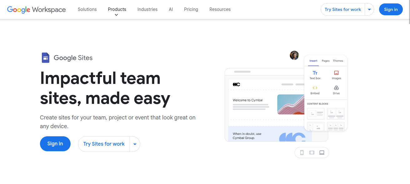 Think of Google Sites as your basic starting point. If you’re still in the "mapping things out" phase, it’s the perfect way to claim your space online before you commit to investing in a paid hosting platform, like Squarespace or WordPress.