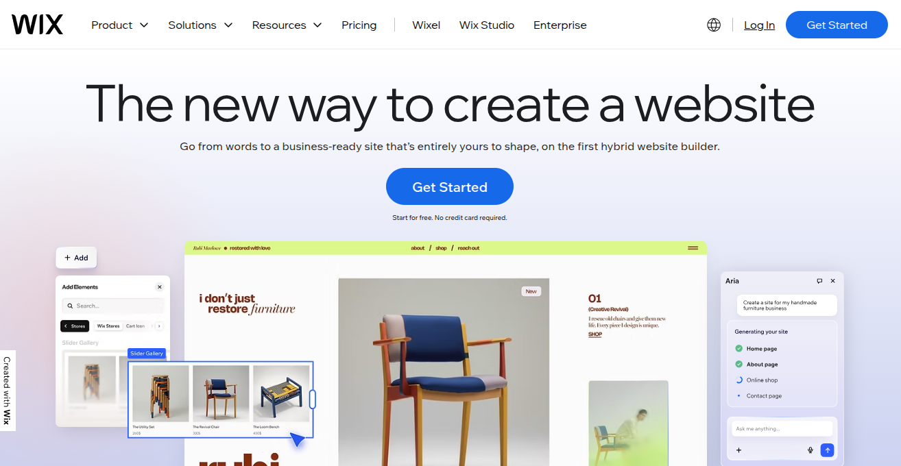 Wix is a budget-friendly way to move if you're ready to level up from a free site to something more official. It’s got a good toolkit for building out your vision using their built-in elements—you can either start with a blank canvas or let their AI build the basic layout.